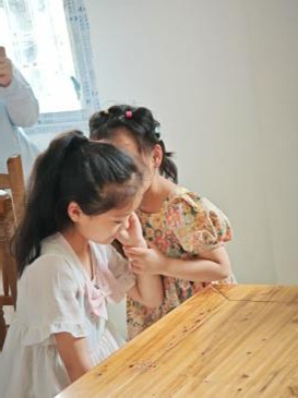 两组孩子玩 “传声筒”:一组传 “李白喜欢喝酒写诗,孟浩然、杜甫是他朋友”,传递中添了 “米酒” 等细节;另一组传 “猪猪侠爱吃披萨、汉堡等,加番茄酱”,衍生出 “奔跑买美食”“草莓酱” 的创意。小老师引导对比,借游戏启蒙文化、激发创意。
