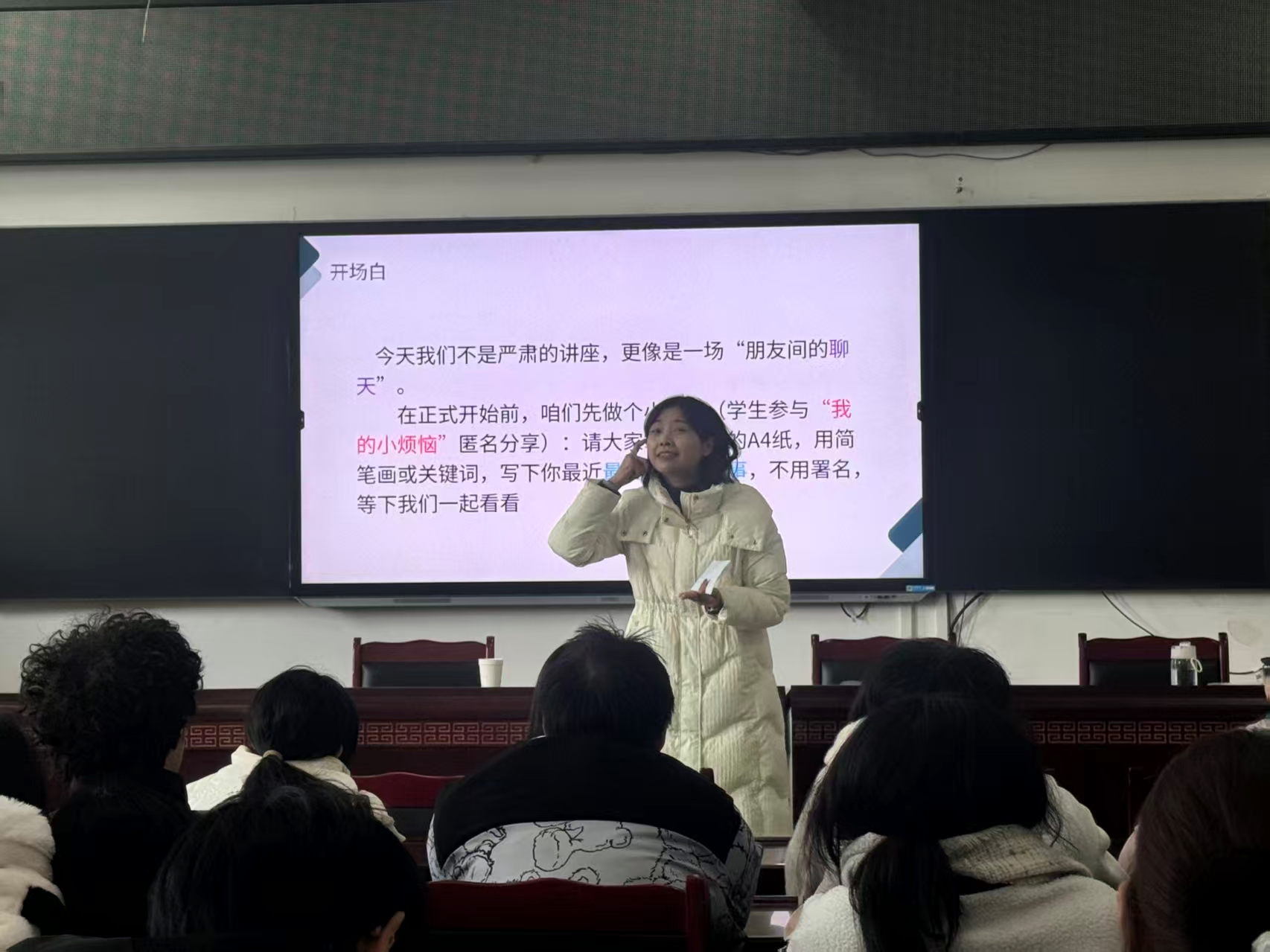 本网讯(文/图 姚婕)11月27日下午14:00,“遇见更好的自己——青春里的人际智慧与成年方向”专题讲座在特A406教室顺利举办。本次讲座由我院校友乐山市特殊教育学校副校长李雪静老师主讲,2025级全体听障学生共同参与,聚焦听障人士心理健康与职业规划,为同学们搭建了倾诉困惑、收获成长的交流平台。