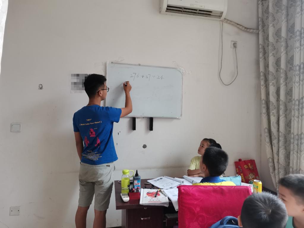 从6月15日到8月15日,2019级特教2班的吴星宇在四川省眉山市仁寿县高家镇开展了教育帮扶活动,开设了小学至初三的课程,授课内容包括语文、数学、英语、物理、历史、书法等。白天,他为孩子们上课,讲解知识;晚上,他和这些孩子们在操场活动,并且还为他们辅导作业。在教学期间,他不仅获得了家长的信任,孩子们的喜欢,更锻炼了自己。