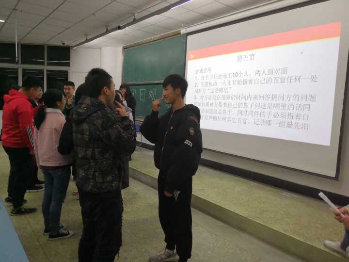活动中,主持人首先介绍了中国共青团、共青团员和团员意识相关知识。在激昂的团歌后,各位共青团员认真的学习了团旗、团徽和团歌的含义,接着团员们又通过一段有关共青团的视频了解了中国共青团的含义与历史。活动最后还增加了有趣的游戏环节,同学们在“真心话大冒险”和“猜五官”的游戏中玩的不亦乐乎。