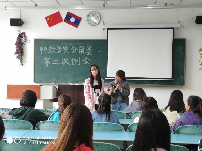 2018年10月17号日中午12点10分,特教学院分团委于行知楼123教室举行了第二次例会。参与本次例会的有分团委书记李红老师、副书记廖嘉奕、副书记洪朝辉、各部门部长以及分团委的30位小干事。本次例会由特教学院副书记廖嘉奕学姐主持。
