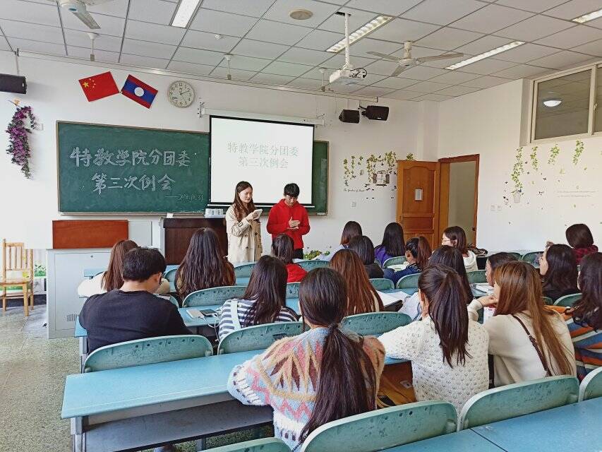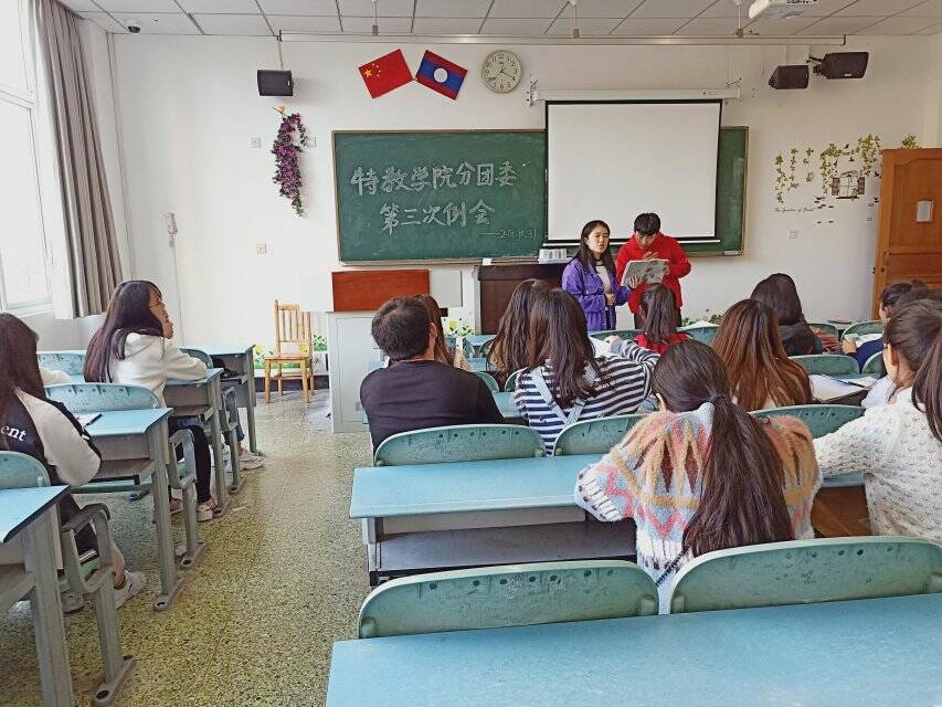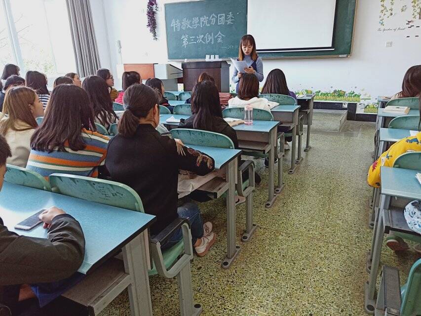 10月31日中午,特教分团委第三次例会在行知楼123举行,本次会议由特教学院分团委办公室艾玉梅主持,分团委所有成员参加了此次会议。